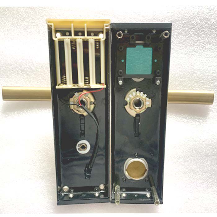 Silver positive pole on the left side of the plug. Silver positive pole on the right side of the plug. Yellow positive pole on the left side of the plug. Black positive pole is on the right side of the plug. Black positive pole is on the left side of the plug.