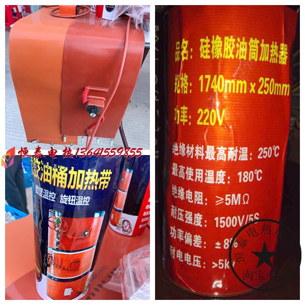 200L bucket with 1740 * 250mm digital display temperature-controlled silicone rubber heating plate for 200L barrel with 1740 * 250mm knob temperature-controlled knob temperature-controlled digital display temperature control