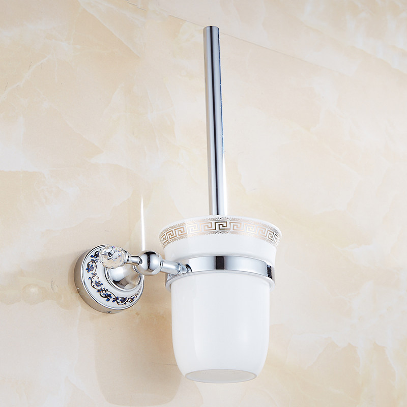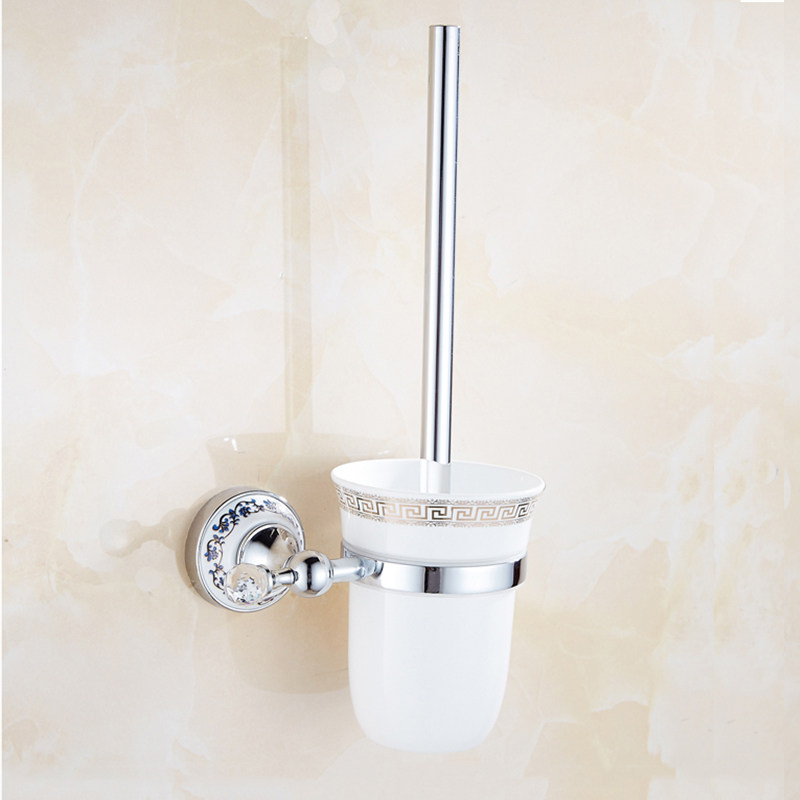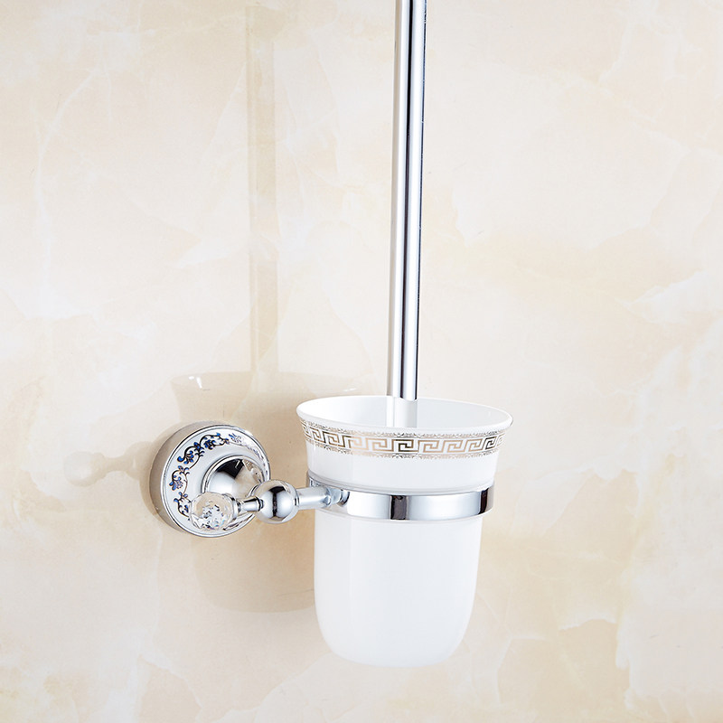 Punch-free European-style silver crystal bottom toilet brush cup holder bathroom soft hair toilet cleaning brush holder wall-mounted