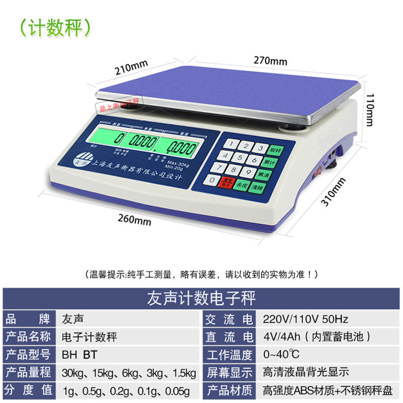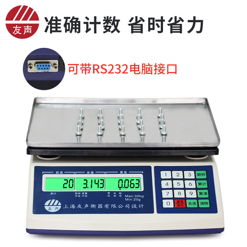 Shanghai Friendship Count Meter Heavy Electronic Scale 3 6 15 30kg Industrial Precision 0 1g Table Scale Serial Port Alarm Lamp