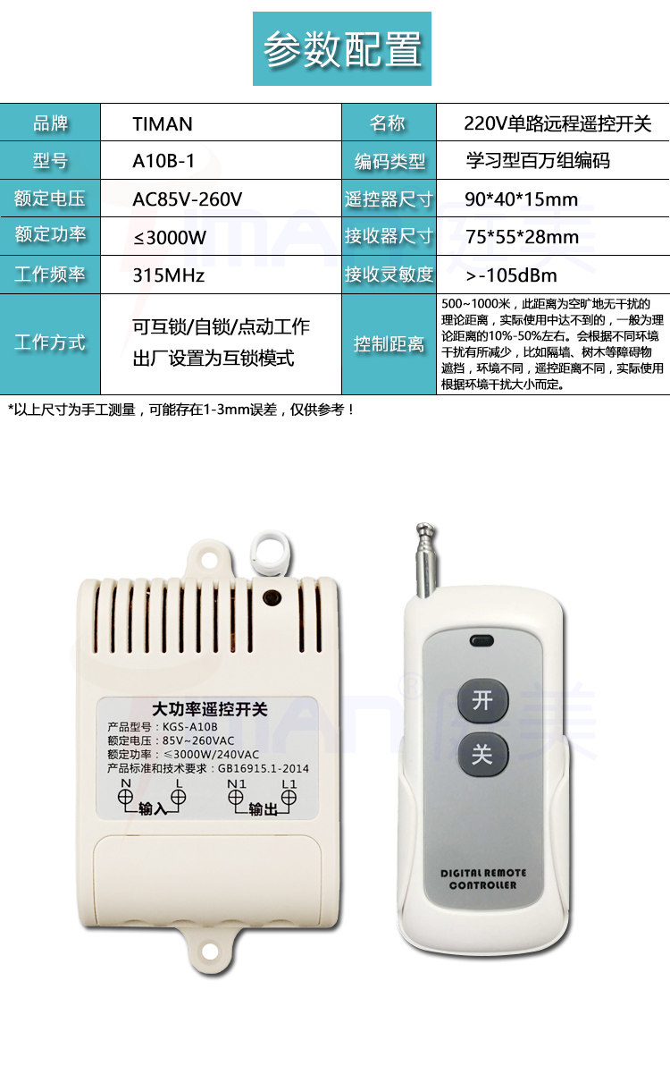 High power motor pumping water pump motor lamps wireless remote control switching off electrical appliances 220V Single way to wear wall learning type