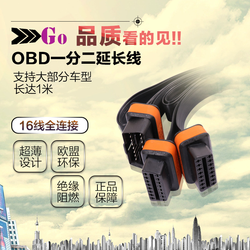 Car load with OBD2 10% second-line instrumental transfer extension cord-to-mother elbow OBD2 extension line one tug
