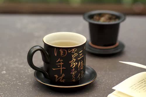 (Heart Tea Farmer) Taiwan Pottery Workshop Golden Calligraphy Concentric Cup Taiwan Straight Hair 300ml
