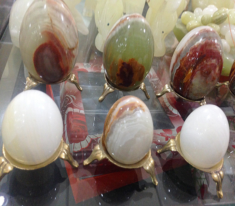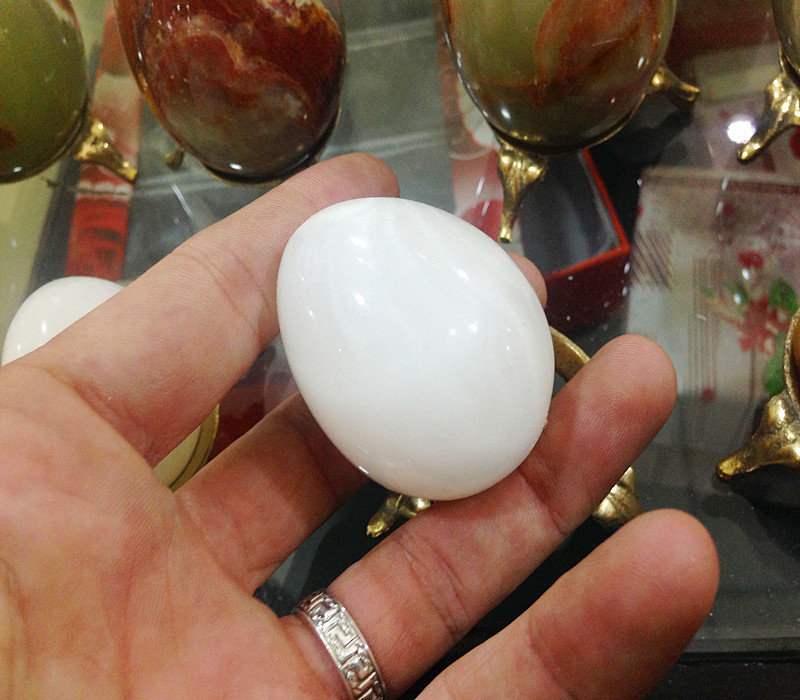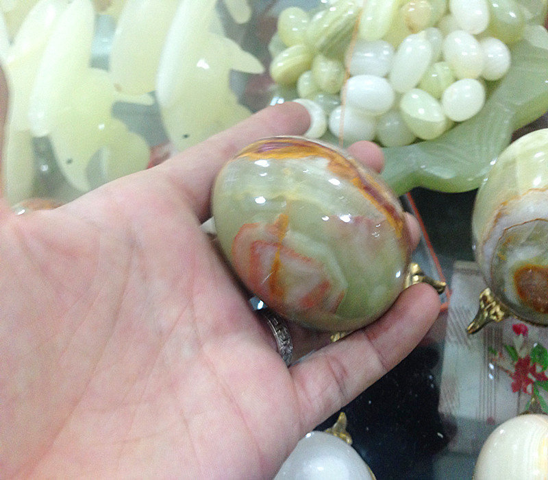 Natural Pakistan imports white jade green jade egg with egg shelf Two sets of egg shelf is brass making special price