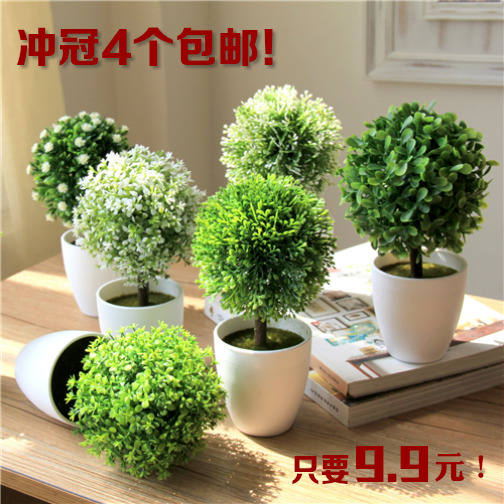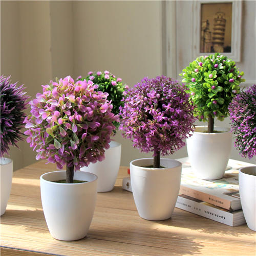 Simulation plant potted bonsai Plastic green plant fake tree Fake flower small flower ball tree ball Home desktop mini ornament