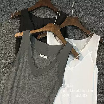 Spring and summer classic solid color slim slim all-match neckline stitching V-neck vest threaded cotton bottoming shirt women's thin section