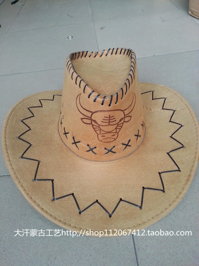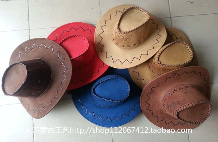 Denim Hat Adult Children Knight Hat Men and women sunhat tourist hat Mongolian Imitation Leather Breathable Bull head Great hat hat