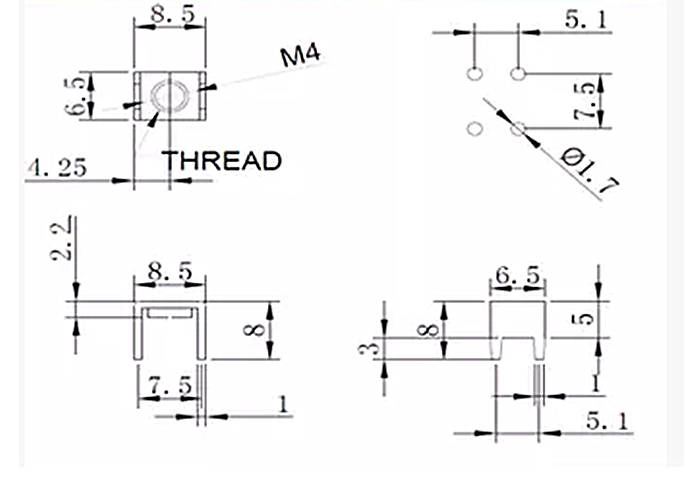 PCB - 1C welding terminal M4 PCB board terminal block hardware stamping parts four - foot terminal block