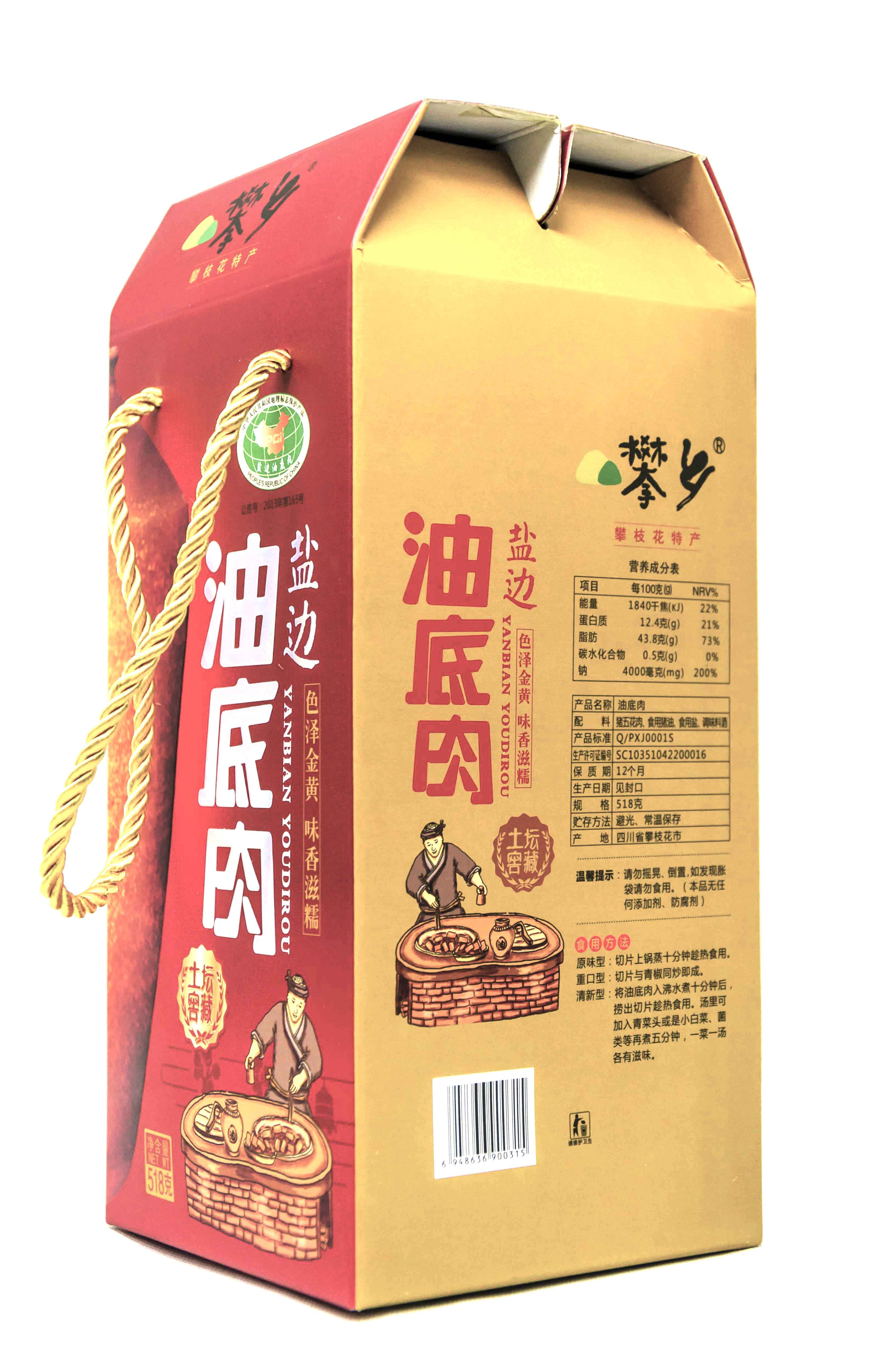 Sichuan Panzhihua specialty Panxiang Yanbian oil bottom meat bacon 518g tube gift box Gift New Year gift non-smoking
