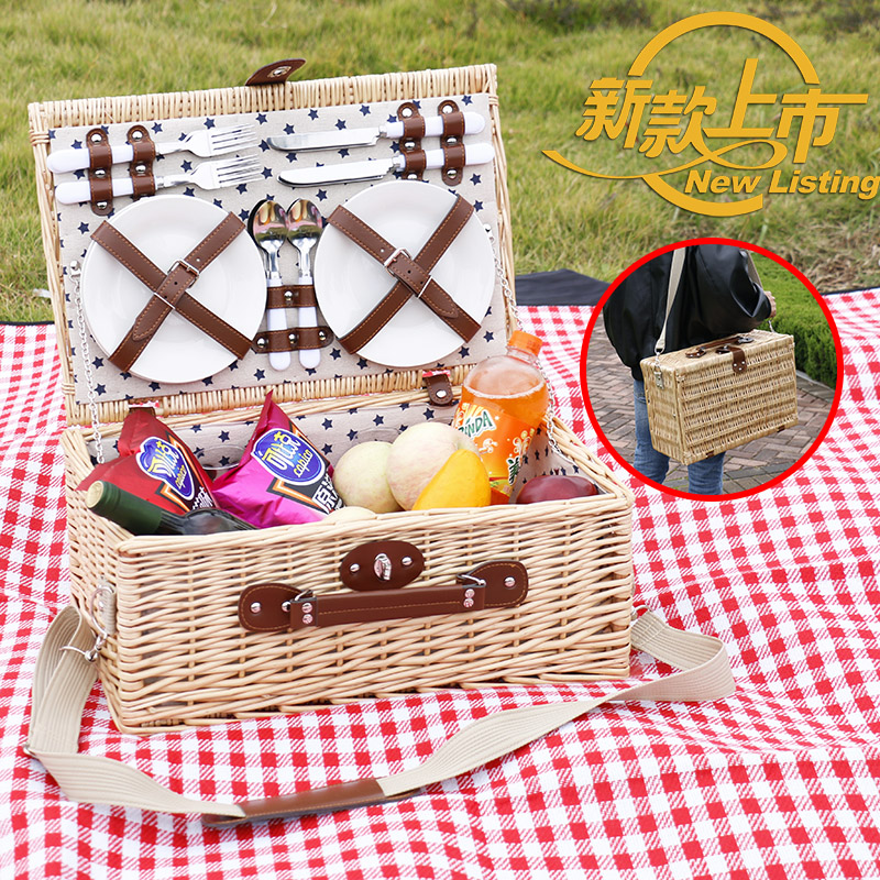 Picnic basket picnic mesh red supplies full-suite vine choreography picnic basket in insulation with cover basket tableware