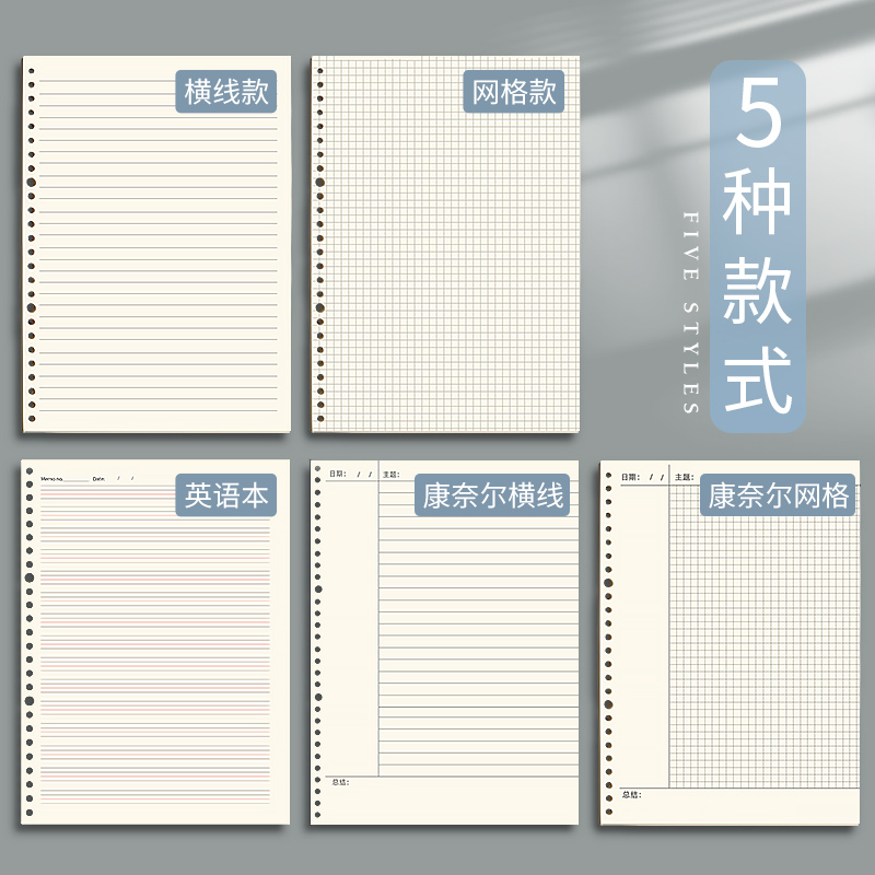 White milky white black beige white 4 sets (A5 grid) a total of 240 sheets 4 sets (A5 horizontal line) a total of 240 sheets 4 sets (A5 blank) a total of 240 sheets