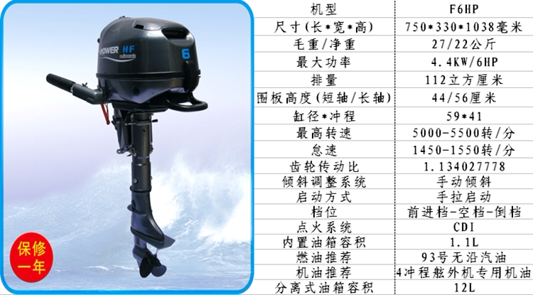 Haifei 4-stroke 6-horsepower outboard motor ship hanger marine propeller motor outboard motor gasoline stern motor