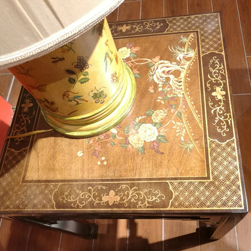 Julianne luxury new Chinese classical solid wood red brown paste gold leaf hand-painted peony coffee table corner entrance table