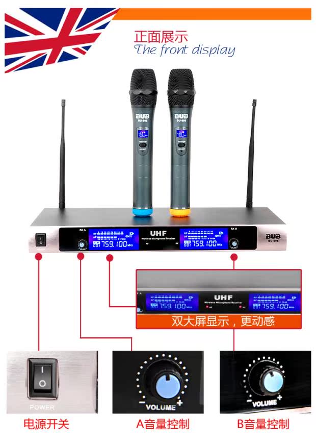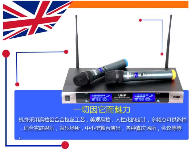 Karaoke One-to-Two Metal U-Segment Wireless Microphone KTV Special Computer BUB Microphone Home Engineering