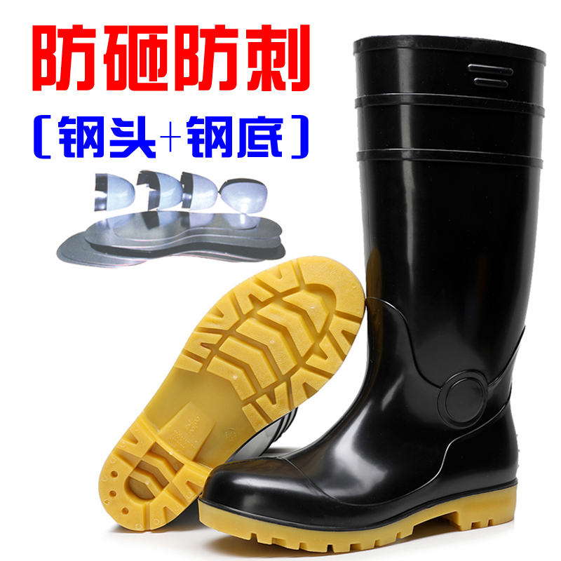 Three-resistant high-cylinder 40cm-three-resistant full black high-cylinder 40cm-three-resistant midcylinder 30cm anti-smashing stab-proof safety boot 38cm (black double steel)