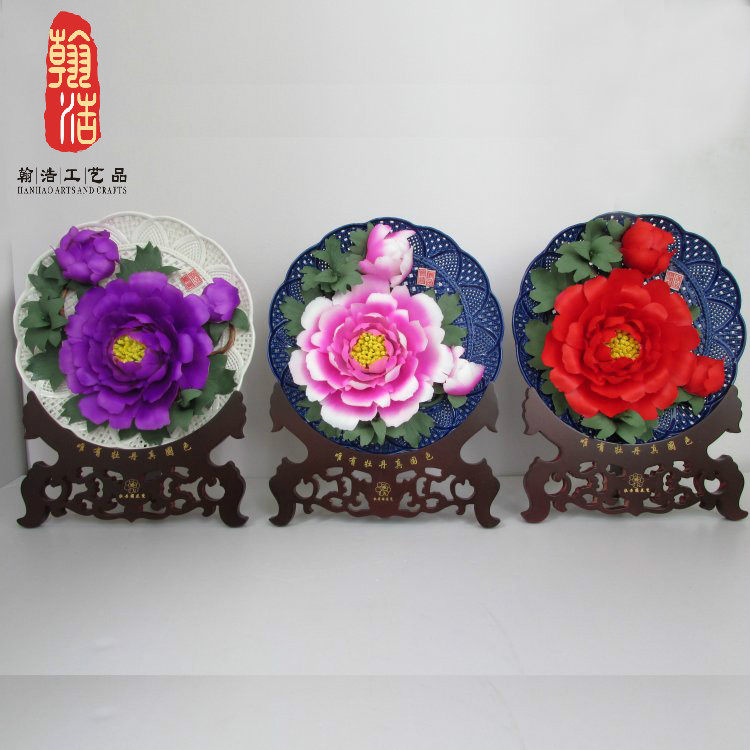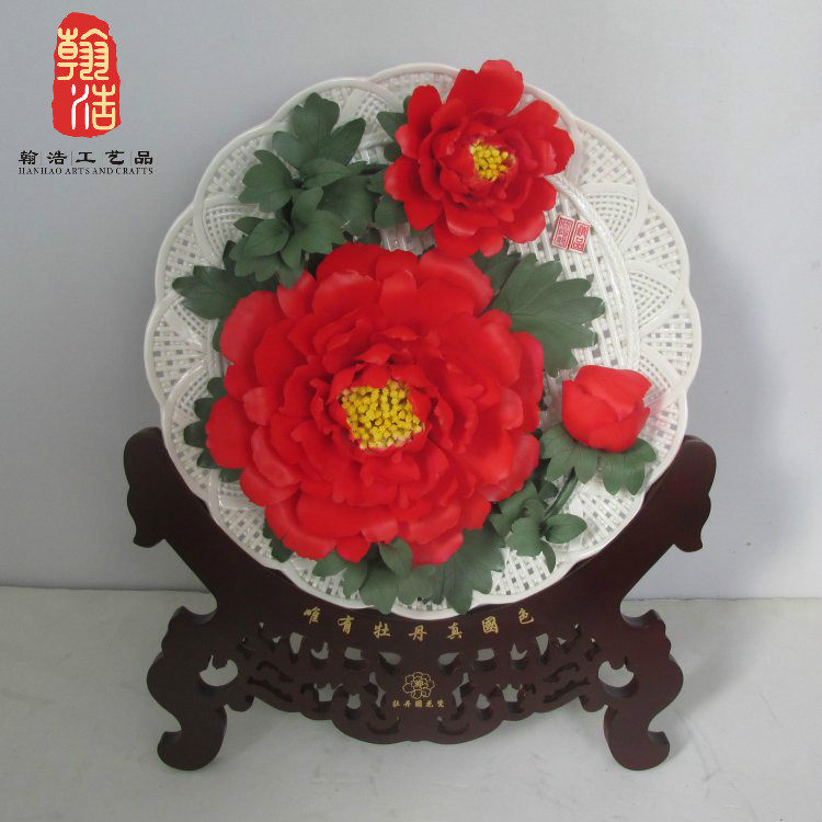 Henan Cultural Home Ceramic Crafts Hollowed-out Hanging Disc Peony Porcelain Three-dimensional Flower Chinese Flowers open rich and expensive pendulum piece