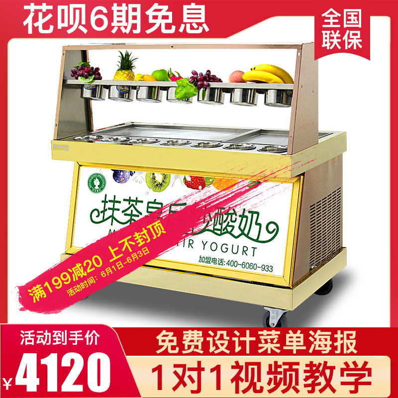 Matcha queen fried yogurt machine Commercial fried ice machine fried ice cream roll machine Thick cut fried yogurt double pressure long and short straight pot