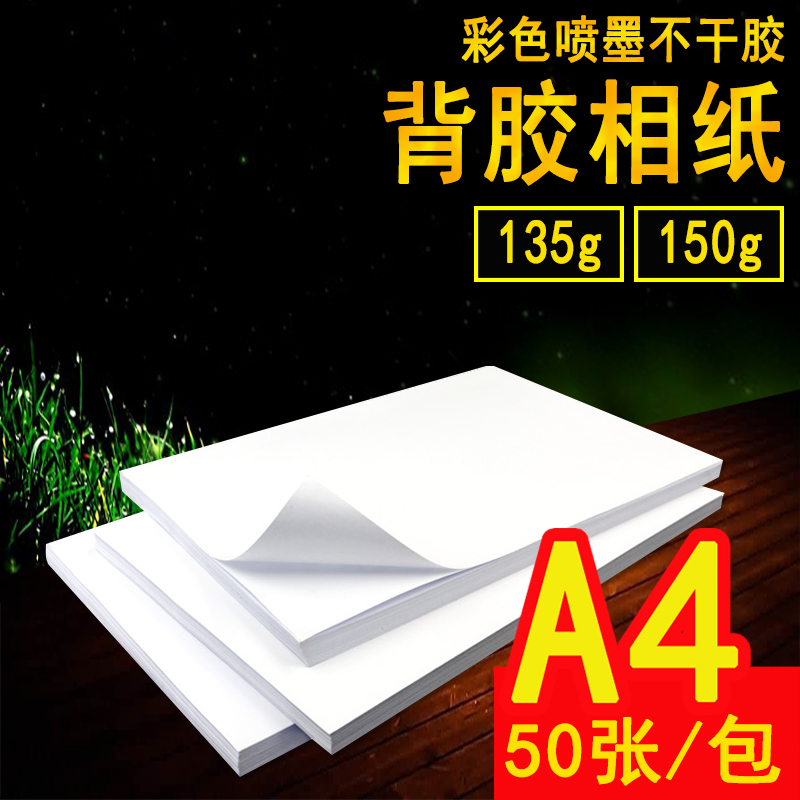 150 gr Back Gum Phase Paper A4 Color Inkjet Printing High Light Photo Paper 115 gr Back Glued Color Spray Paper 135g Large Head Stick Without Dry Adhesive Paper 50 sheets-Taobao