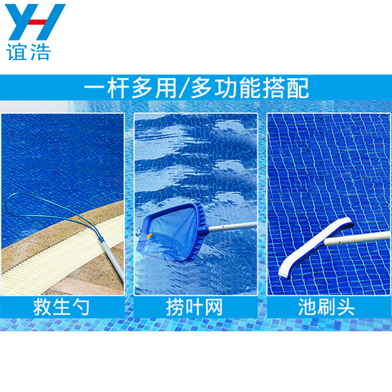 Swimming pool lifesaving pole manual sewage suction machine aluminum alloy telescopic pole leaf net pole pool brush pole 3-9 meters three-section extension
