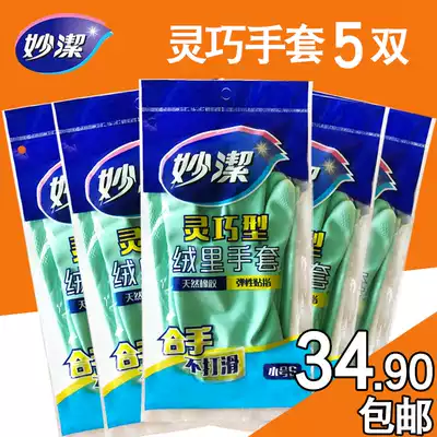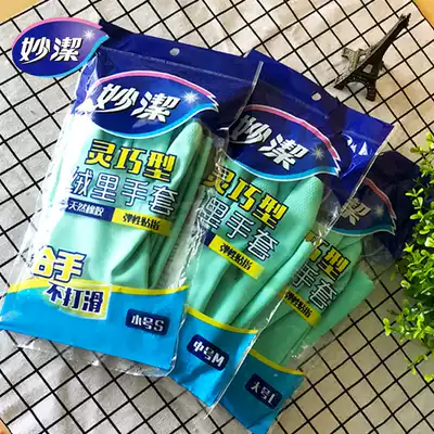 Miao Jie housework rubber thin summer gloves without velvet green smart washing dishes soft hands large and medium size