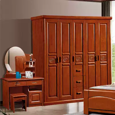 Solid wood rubber wood five-door large-capacity assembly storage wardrobe wardrobe with drawers can top the bedroom Chinese style atmosphere