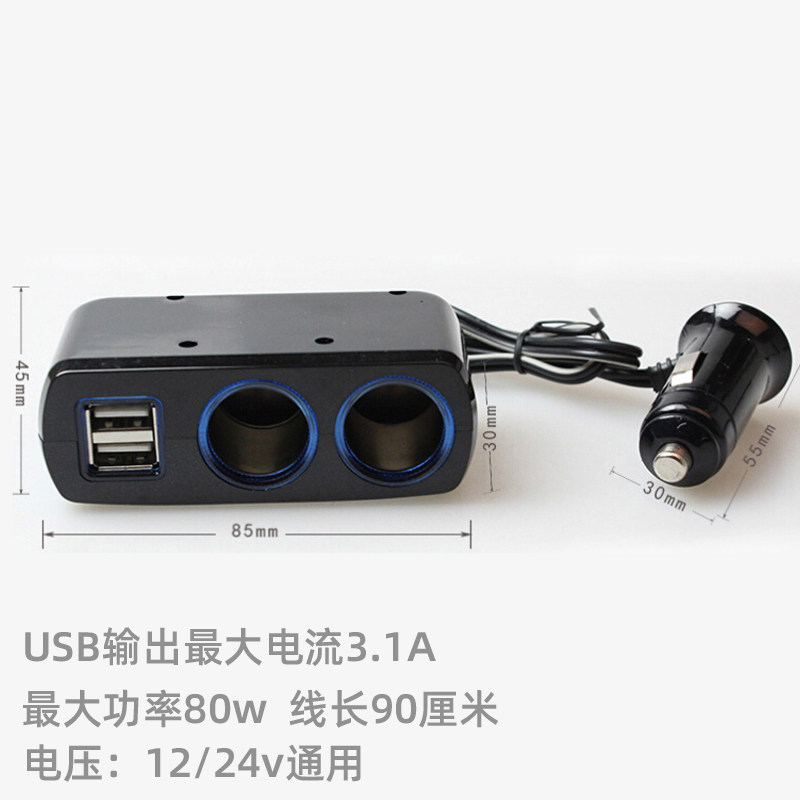 Vehicular charger car multifunction cigarette lighter one drag two USB car 12 24v universal mobile phone quick charge