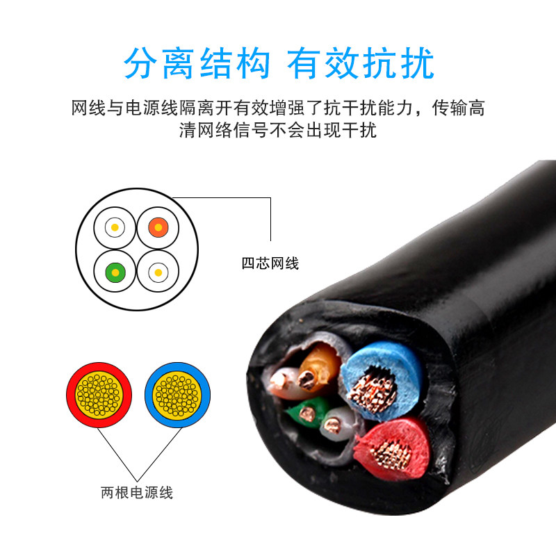 4 Core 8 Core mesh route with power integrated line pure copper outdoor network integrated line monitor twisted pair 300 m