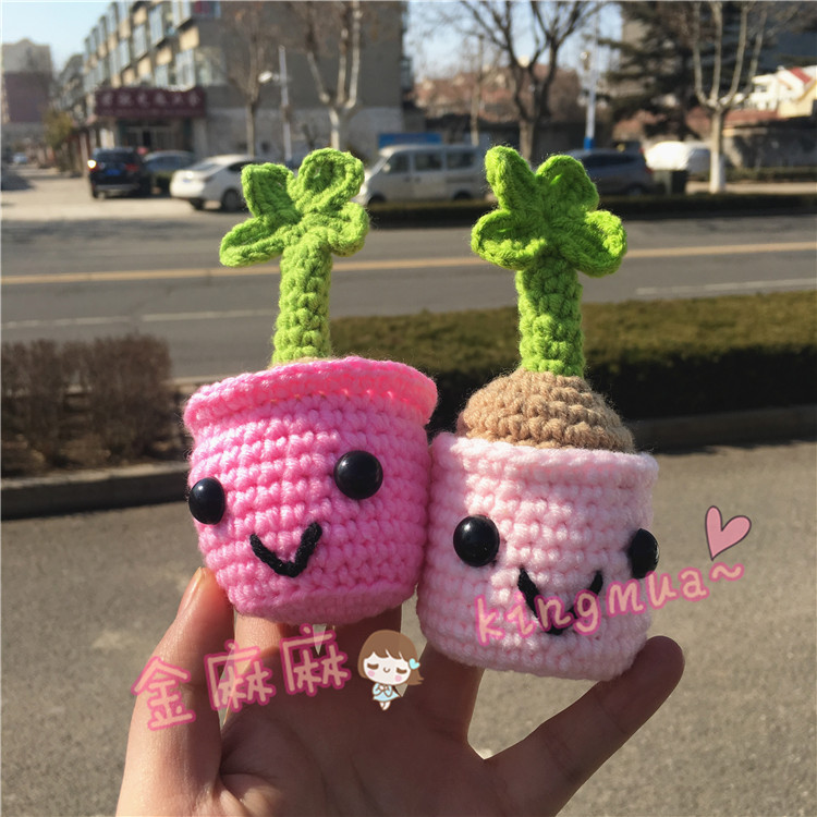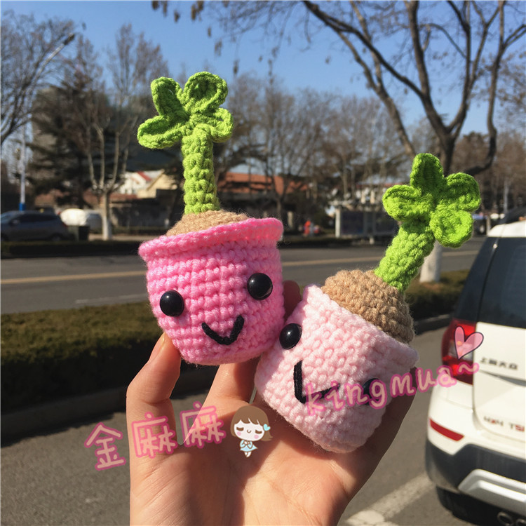 (Finished product) Handmade woolen crochet lucky four-leaf clover potted simulation four-leaf clover gift for girlfriend