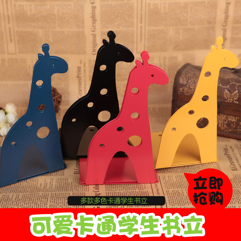 Korean Creative Book Stand Giraffe Shaped Cartoon Cute Thickened Iron Book Stand Metal Bookshelf Gift 2 Pieces