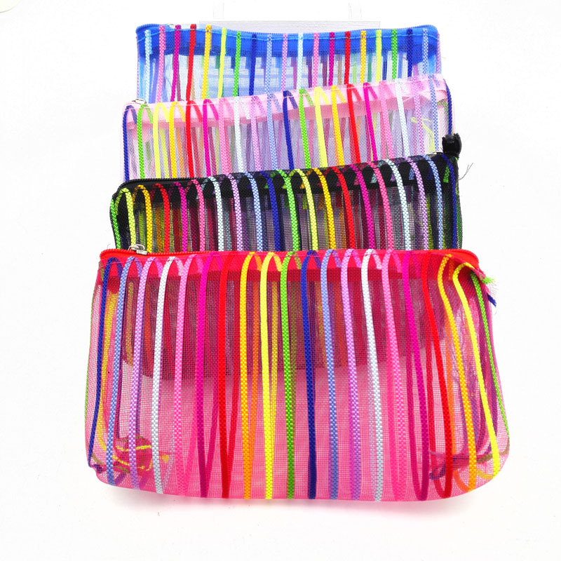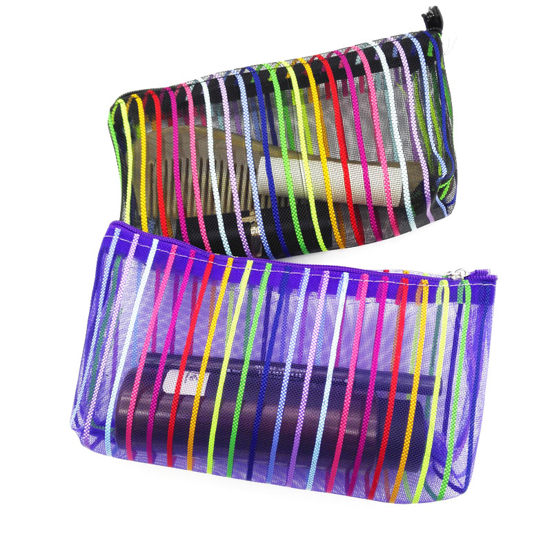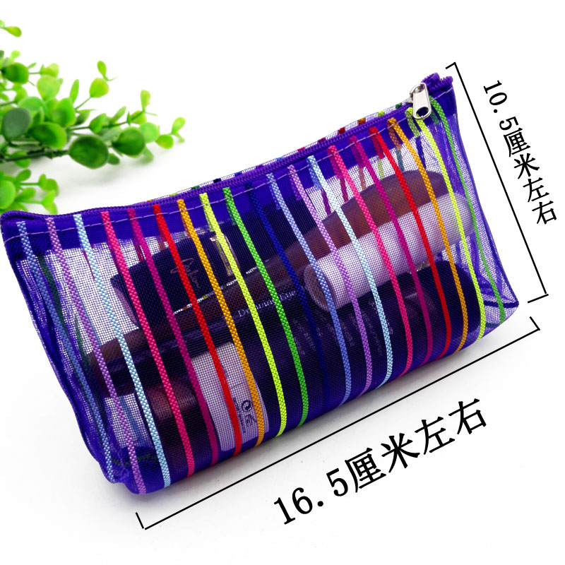 B142 Candy Color Stripe Screen Translucent Cosmetic Bag 12 Travel Bag Yiwu 2 yuan