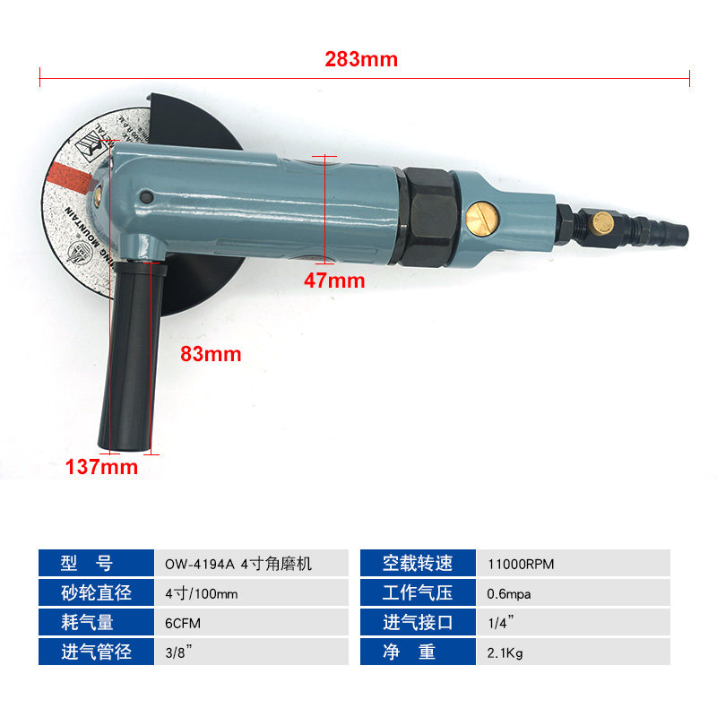 Taiwan OW-4194A pneumatic 4 inch angle mill 100mm pneumatic handheld sand polishing machine