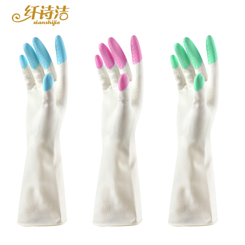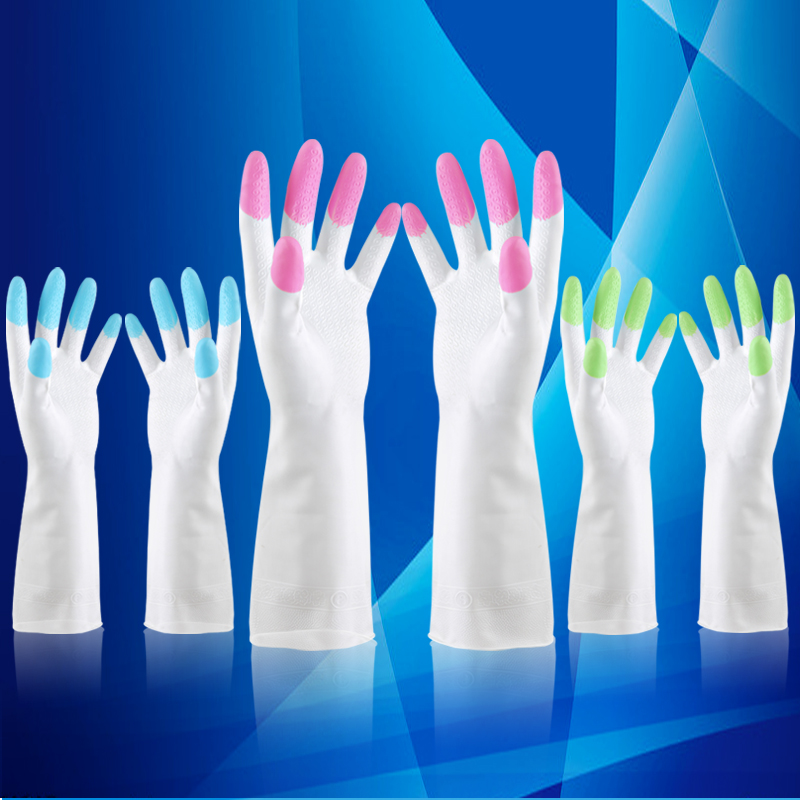 Household latex dishwashing gloves women's summer thin section work washing clothes Rubber leather housework brush bowl Waterproof durable type