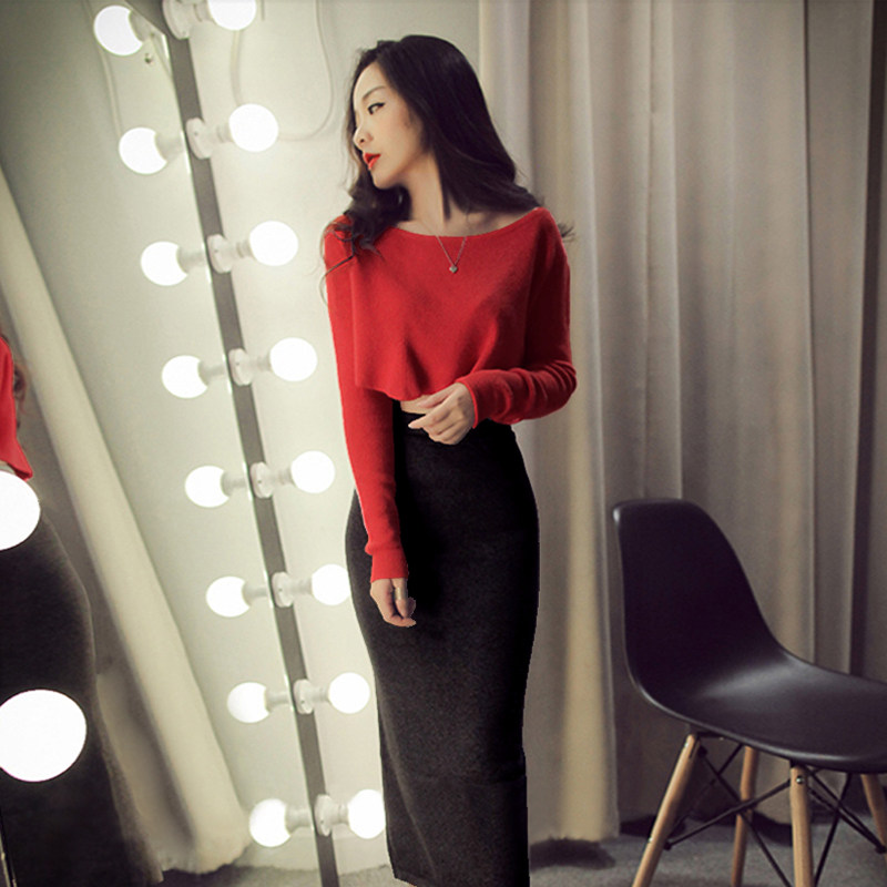 Spring and Autumn new night women's fashion suit sexy short long-sleeved top split skirt two-piece suit skirt