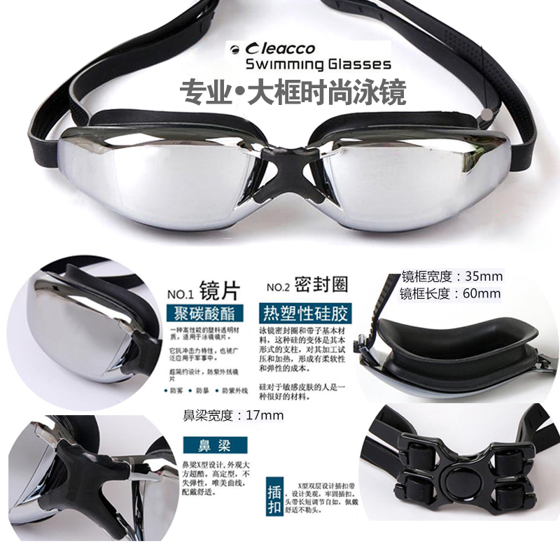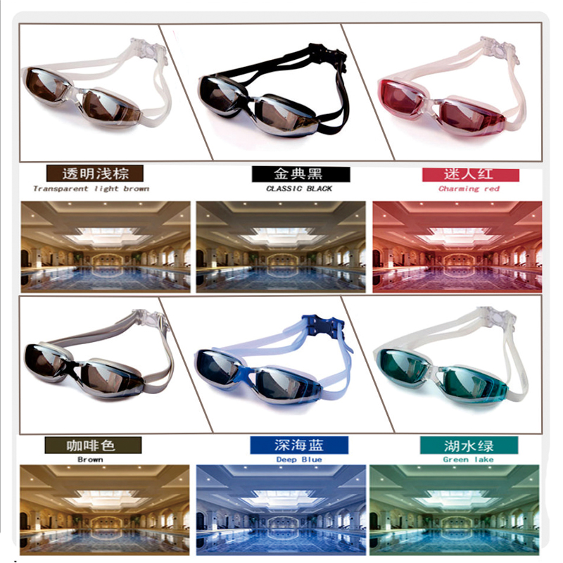 Swimming goggles large frame fashion electroplating flat light myopia swimming goggles men and women with mirror box waterproof anti-fog swimming glasses