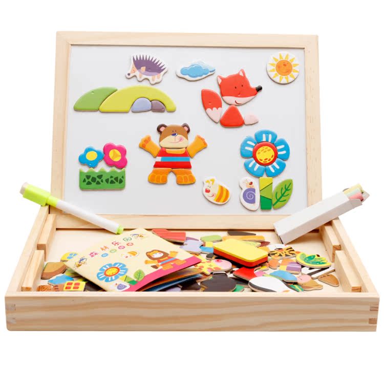 1-3-4-5 Year Old Teaching Aids Gift Wooden Jigsaw Multifunction Double-sided Magnetic Forest Park Parquet Black-and-white Boards
