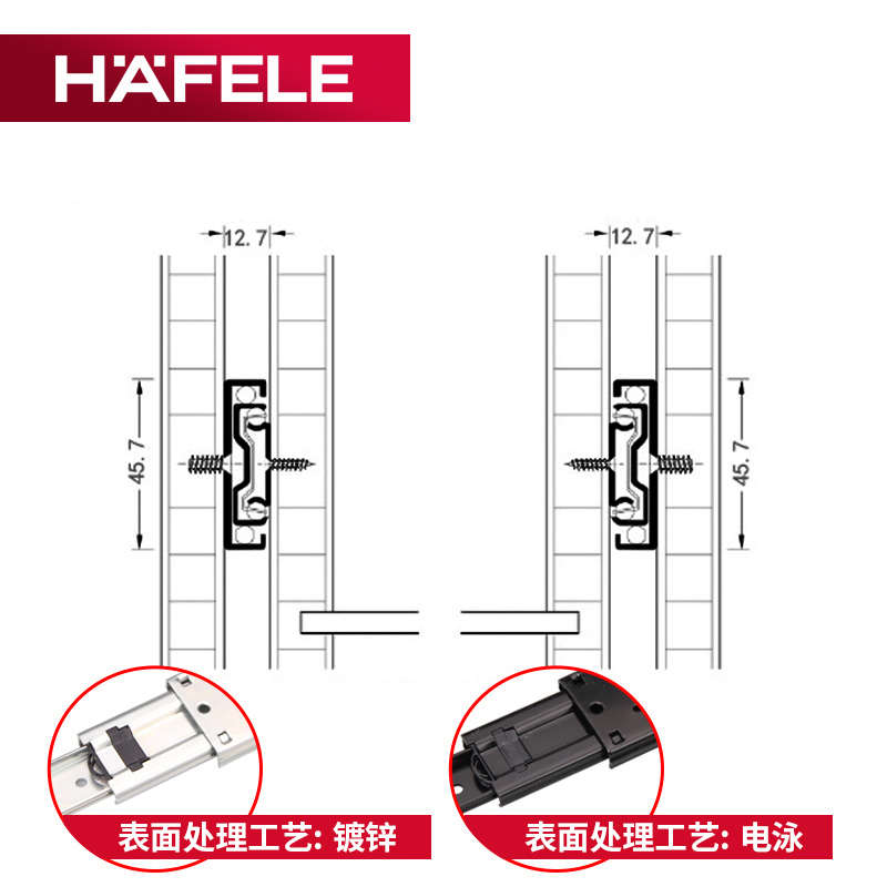 Germany HAFELE three-section sliding track rail slide drawer track Full pull-out guide rail Three-section rail