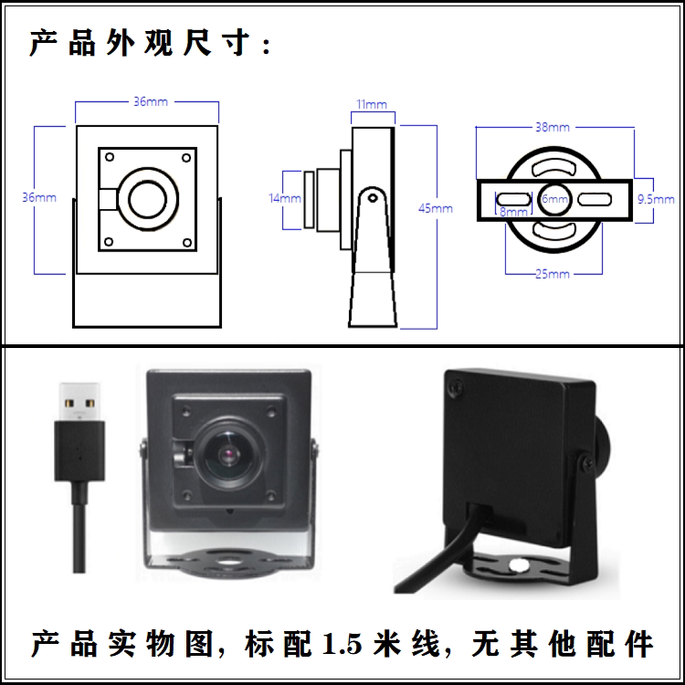 1080p industrial-grade high-definition computer camera USB drive-free 60fps frame wide-angle distortion-free Android uvc protocol