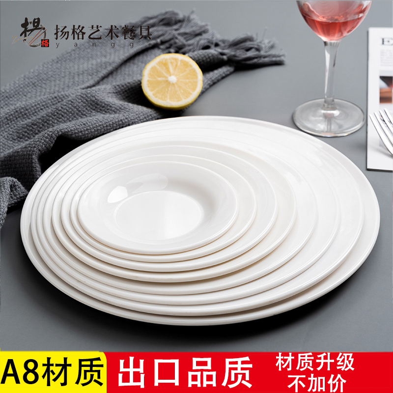Melamine imitation porcelain tableware plastic disc hotel dining room plate rice white plate flat plate commercial round bone dish