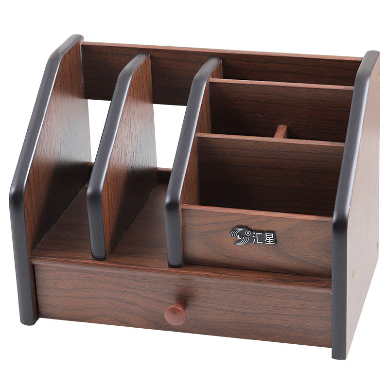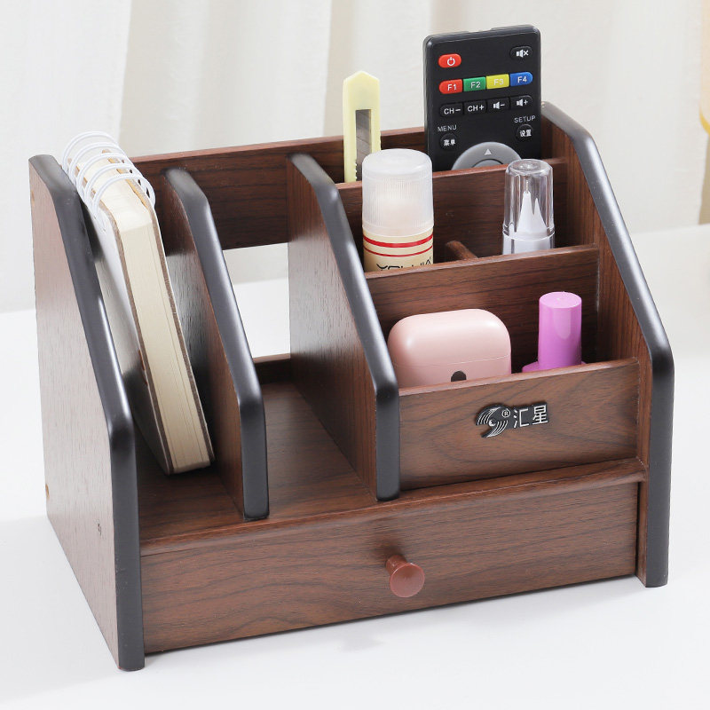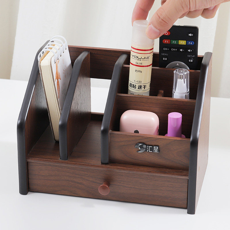 Huixing Wooden Multifunctional Pen Holder drawer Desktop File shelf Living room Tea Table Remote Control of the Contained Box Customization