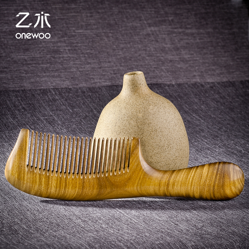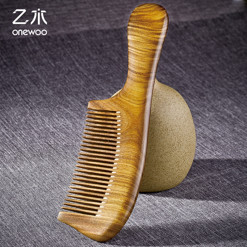 B wood natural green sandalwood comb Electrostatic comb Curly hair Shun hair large wide teeth Household whole wood custom lettering anti -