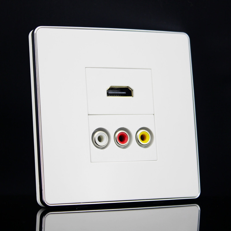 Silver edge solder-free 86 type red yellow white bad audio video HDMI socket panel HDMI HDMI in-line wall plug