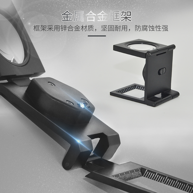 High-grade three-fold folding magnifier eyepiece ten times the cloth mirror High-definition optical scale with lights Textile printing outlets special maintenance inspection antique pigeon eye tools 10X magnifier 1000