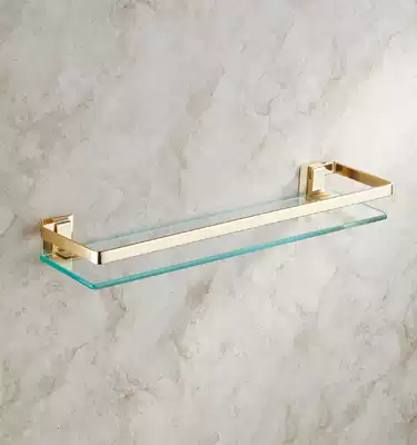 Gold mirror front frame cosmetic rack long square dressing room rack single-layer washroom rack bathroom tempered glass rack