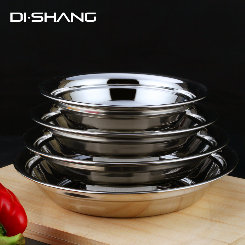 Founder Thickening 304 Stainless Steel Round Tray Deepening Plate Creativity Steamed Fish Dishes Home Fruit Tray Dinner Plate