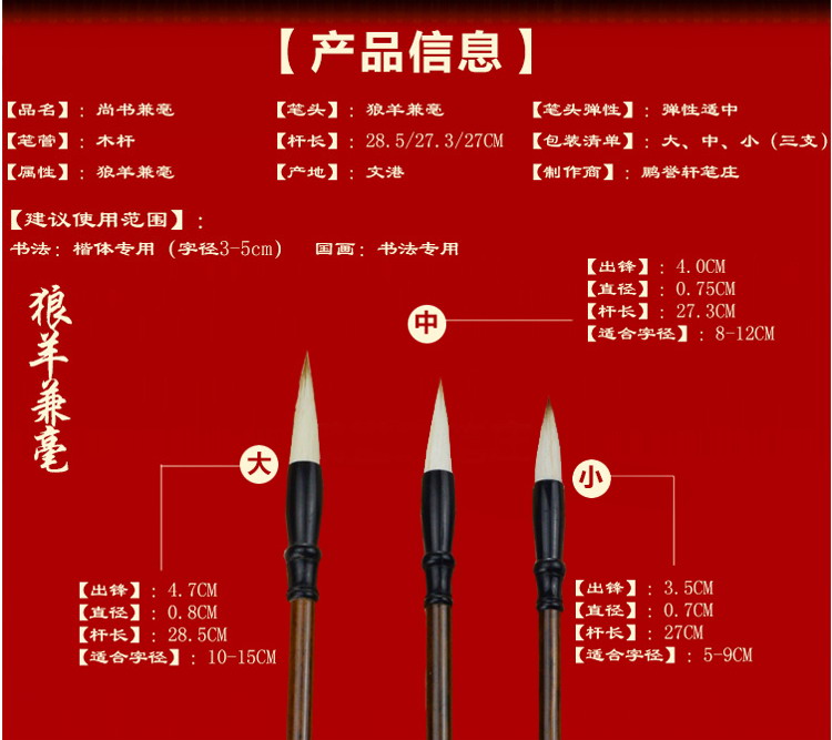 Zhengzong Shulian Lake pens Shang and milli Lake State Calligraphy Students Beginners Wolf Milli in big block letters wholesale