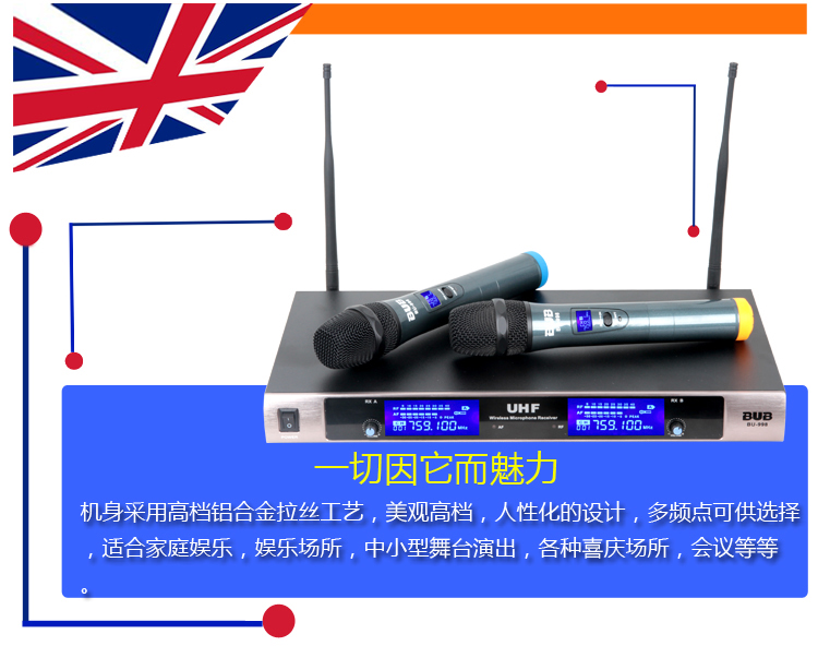 BUB Karaoke One Drag Dialog Metal U Section Wireless Microphone KTV Special BUB Microphone Household Engineering