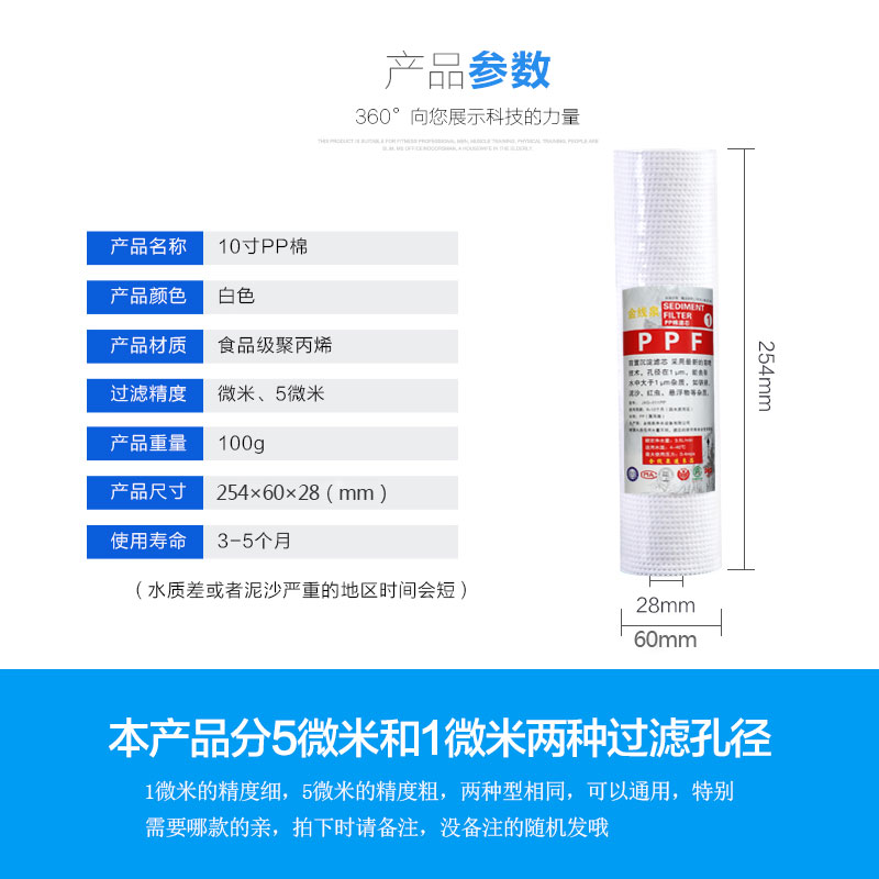 10 inch 130g needle punched PP cotton filter element 1 micron 5 micron water purifier polypropylene PPF water filter first-class universal