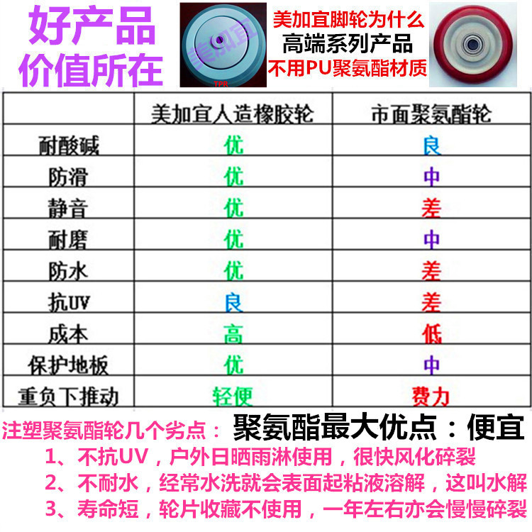 Fixed stainless steel casters 3 inches artificial glue acid and alkali resistant 304 material bracket Meijiayi silent food trolley