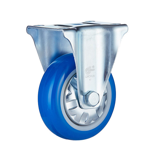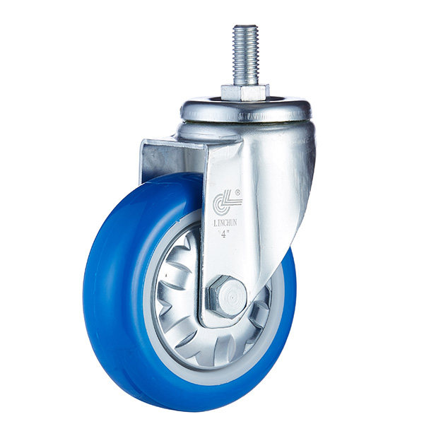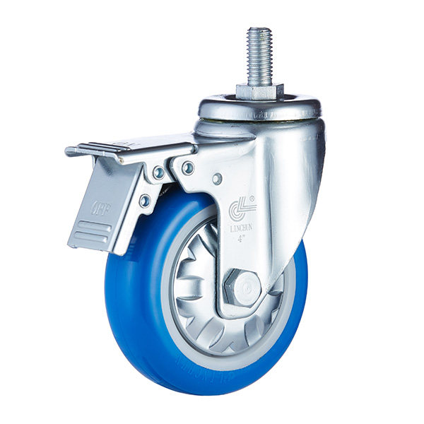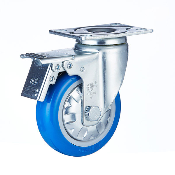 Lin Chun 2B4 inch caster blue silent PU polyurethane industry brake 4 inch 5 inch pulley wheel