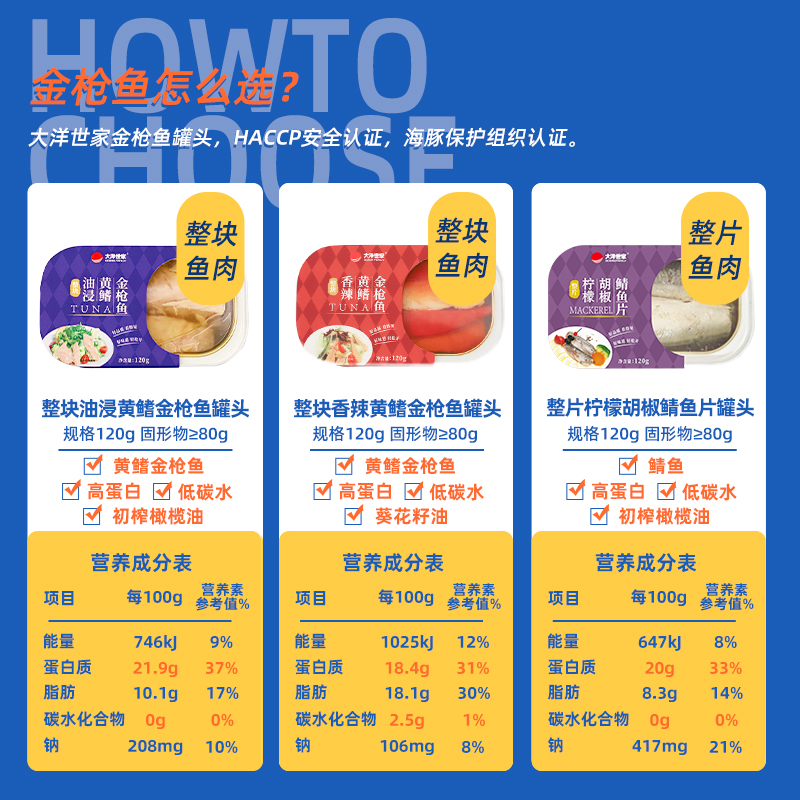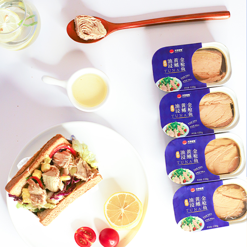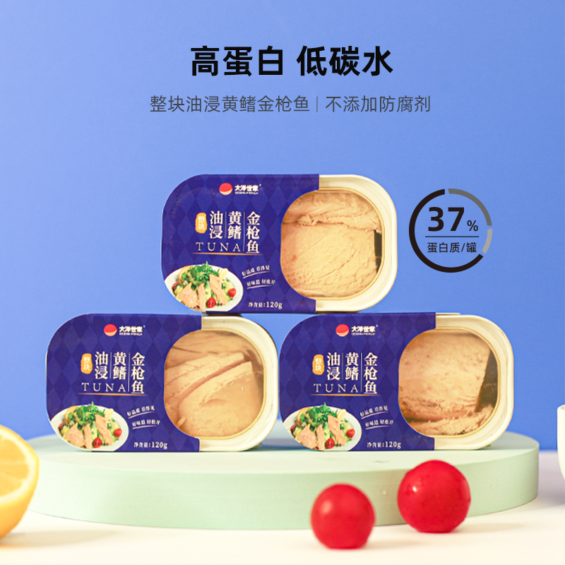 Ocean Family Whole piece of oil-soaked yellowfin tuna canned seafood fitness ready-to-eat salad sushi 120g*2 cans